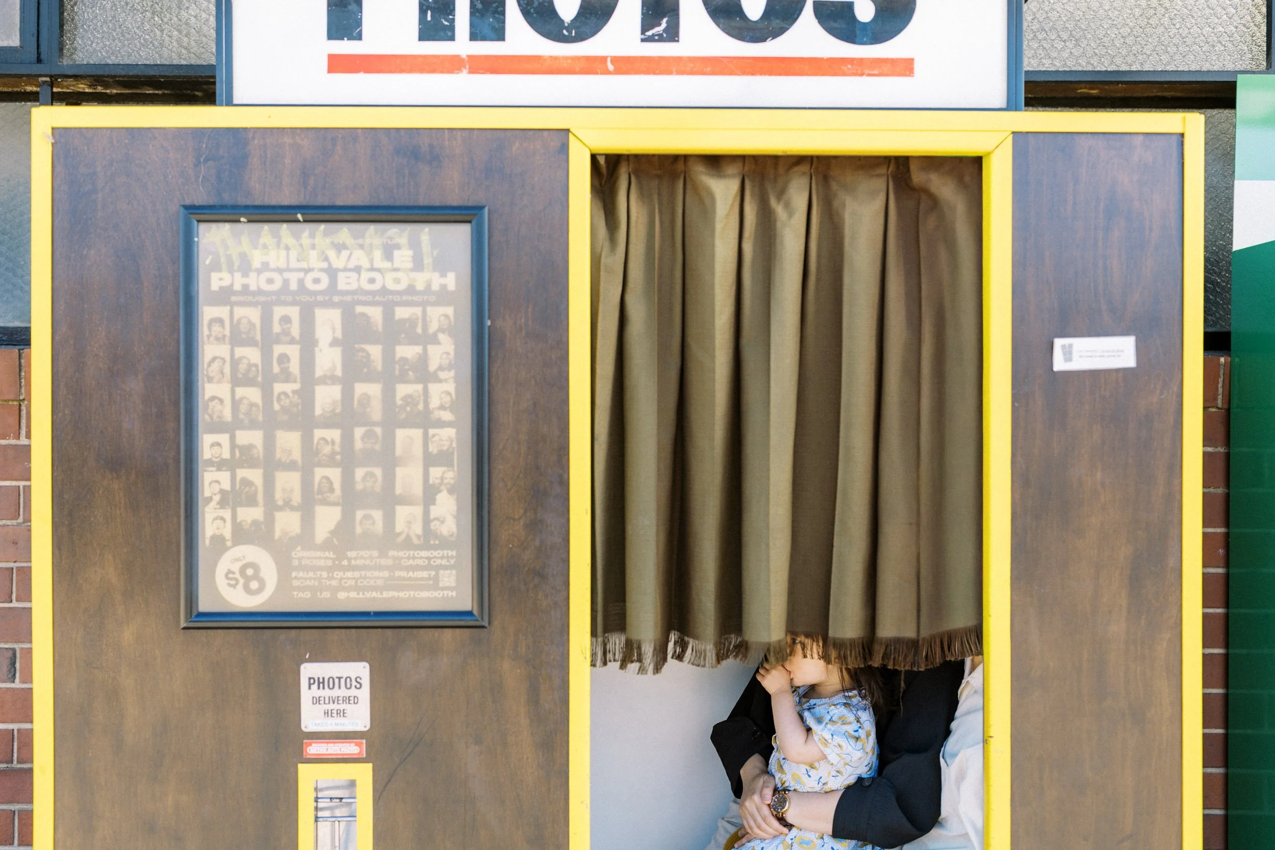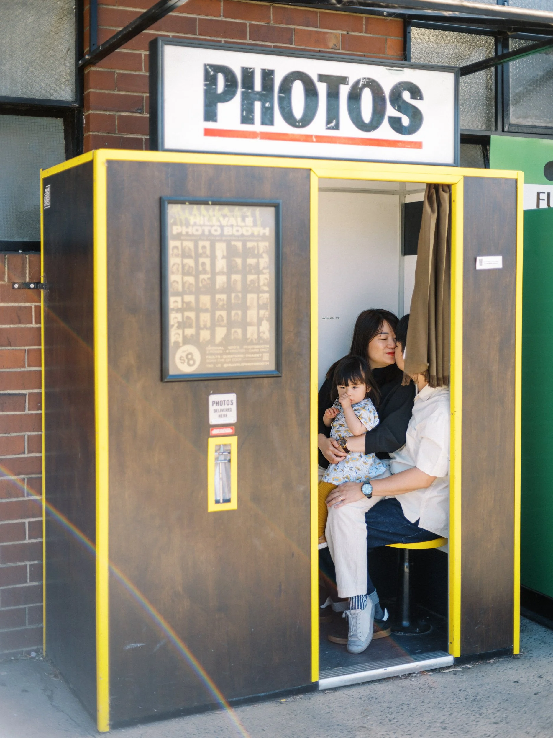So we spent the morning in Brunswick. Breakfast at Ona Coffee, little hands wrapped around warm cups of milk foam and sprinkles, conversations stretching a little longer than usual. Afterwards, they wandered into a photobooth nearby — three faces pressed close, laughter soft but real.